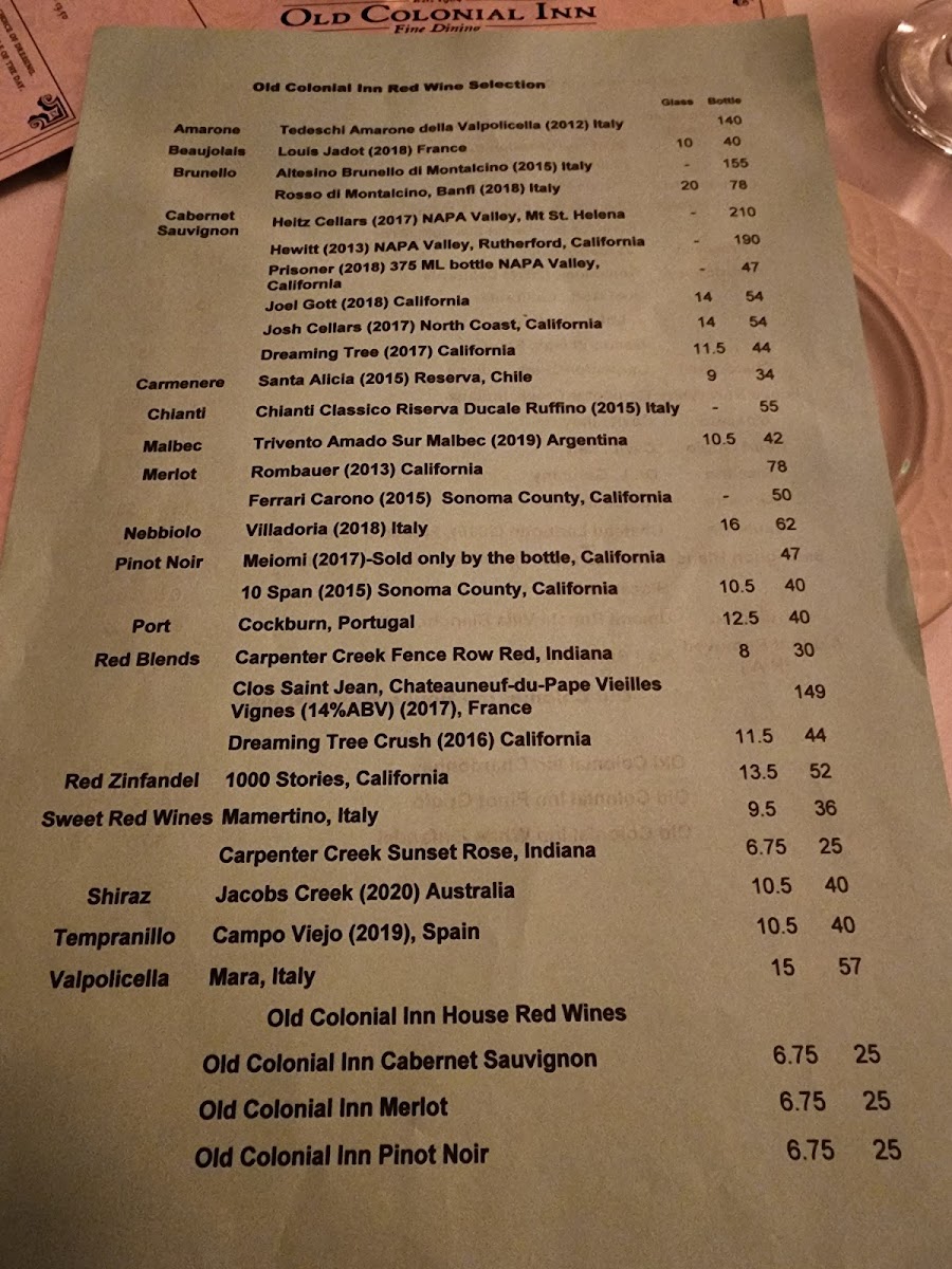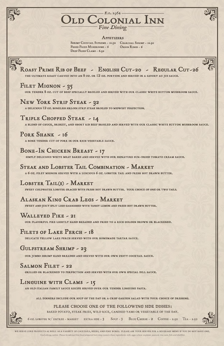 Old Colonial Inn Menu (2025 Update)